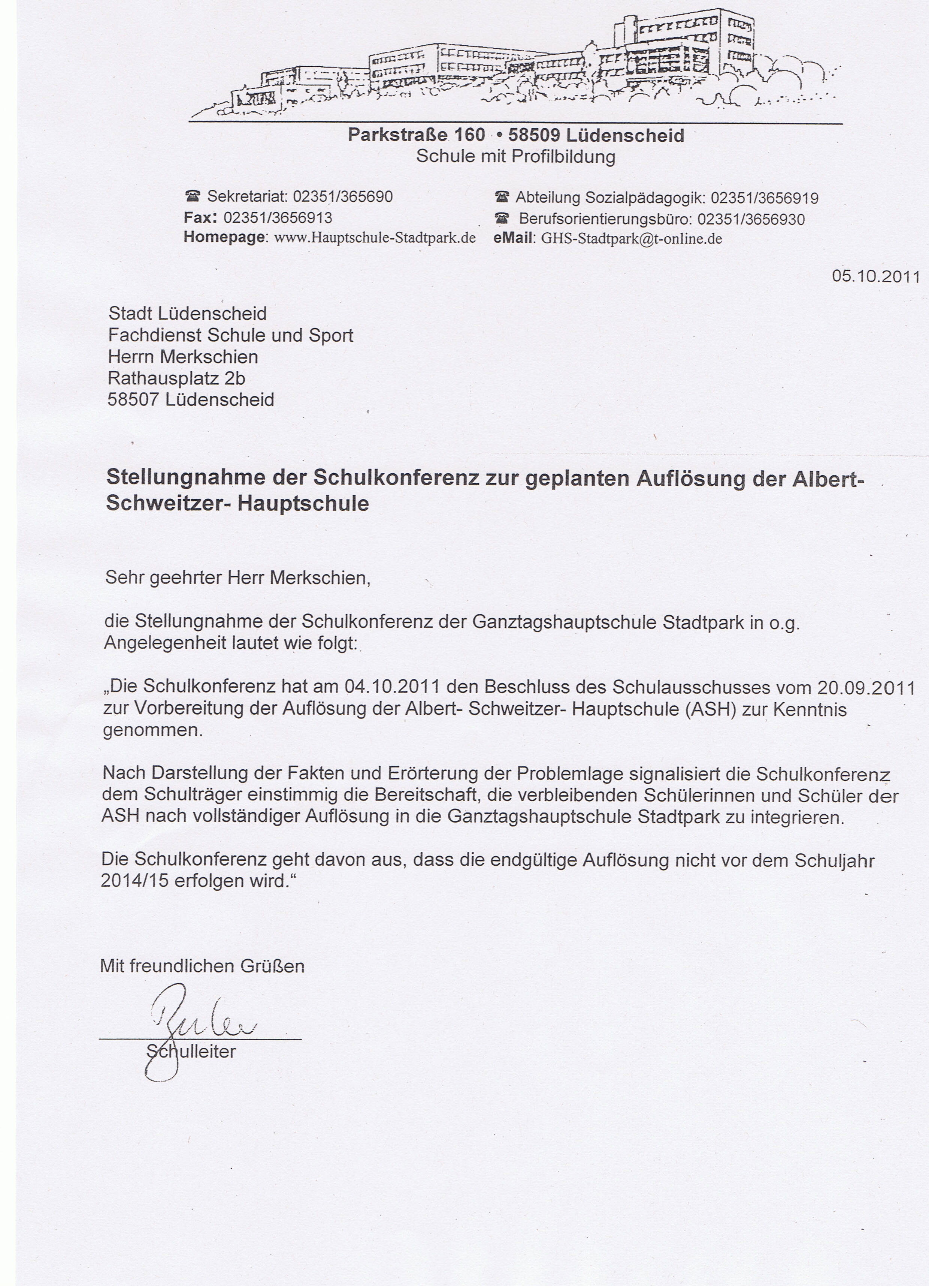 | Ö 4 | Auflösung der Albert-Schweitzer-Schule
