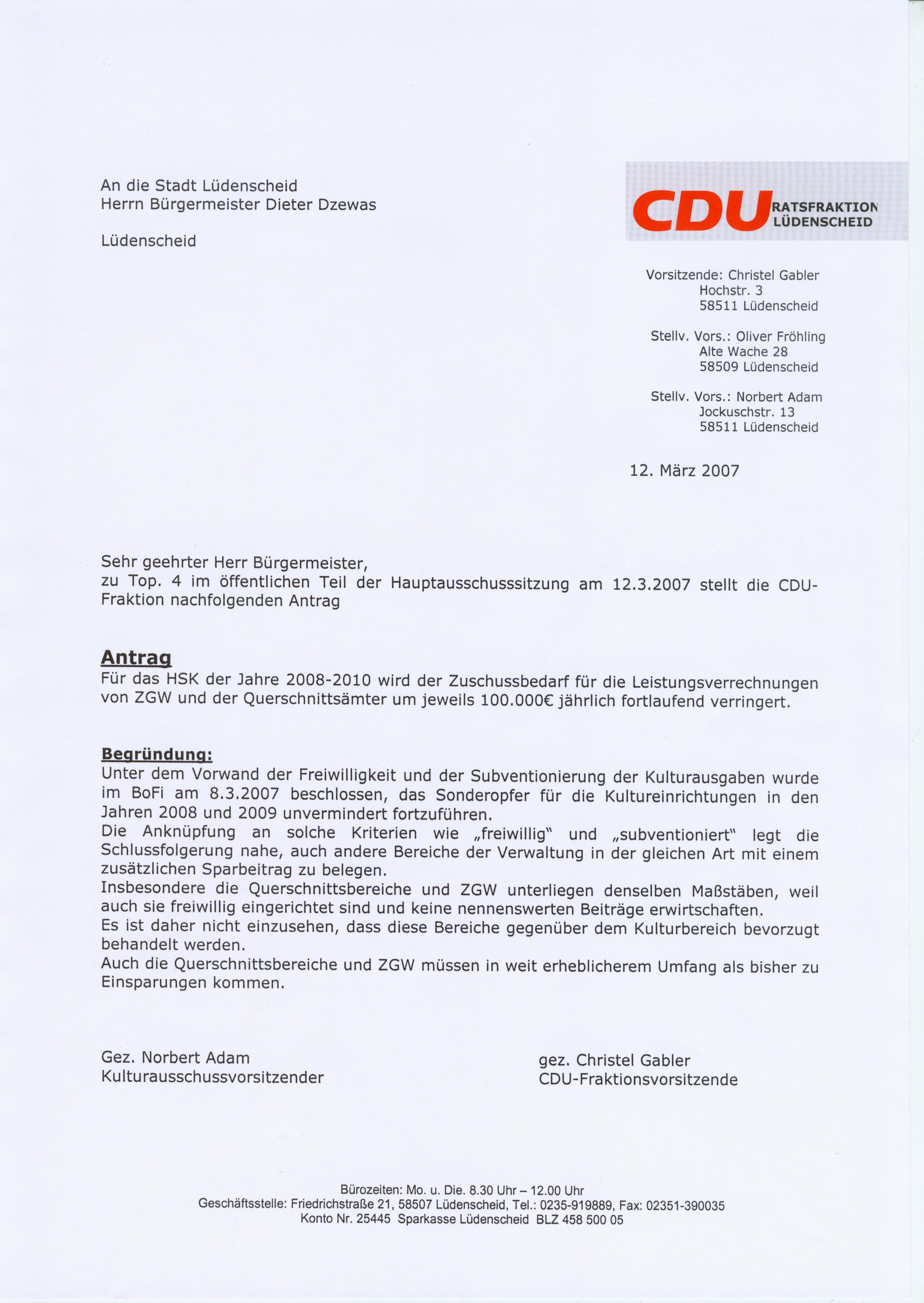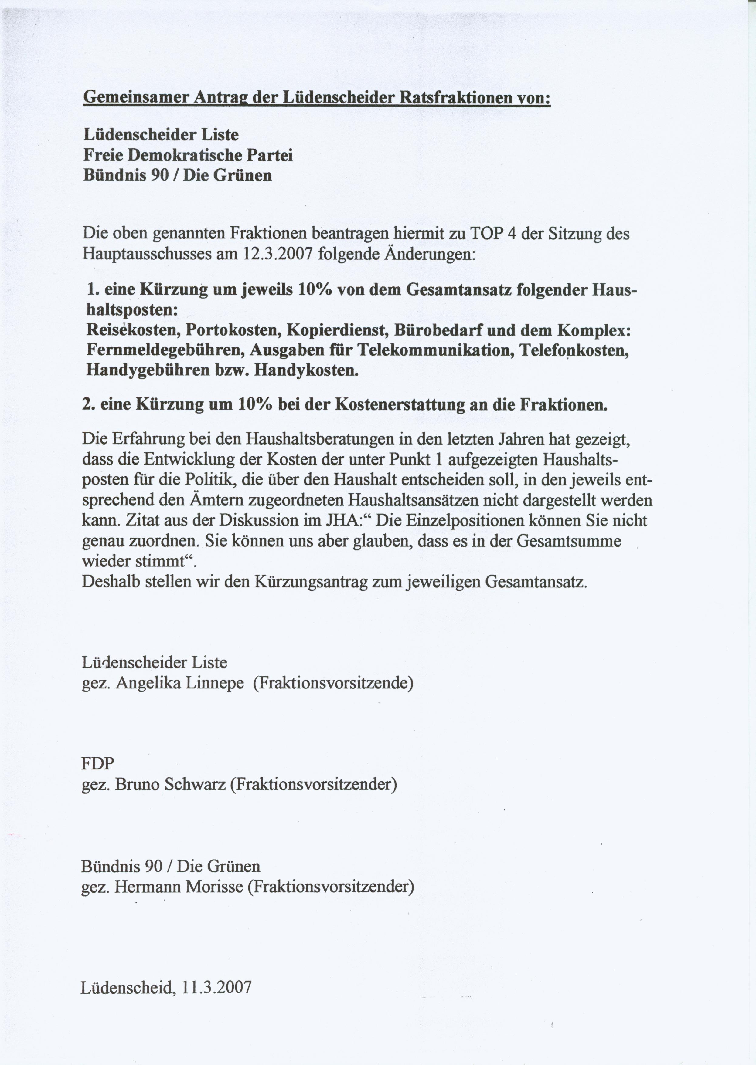 Beschluss: Mit Stimmenmehrheit abgelehnt Abstimmung: Ja: 2, Nein: 13 | 034/2007 | |