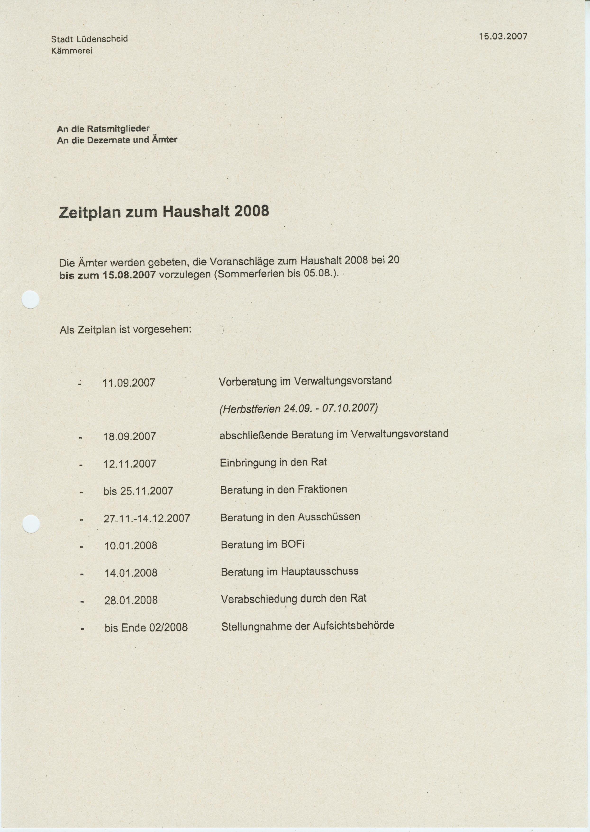 | Ö 11.1.2 | Zeitplan zum Haushalt 2008 | ||